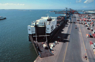 bei Roll-on/Roll-off werden die Fahrzeuge in das Schiff in eine Art Transportbox hineingefahren und